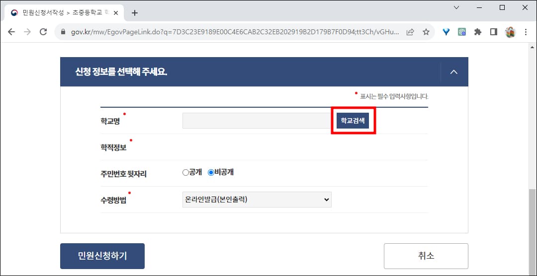 생활기록부 조회 및 발급