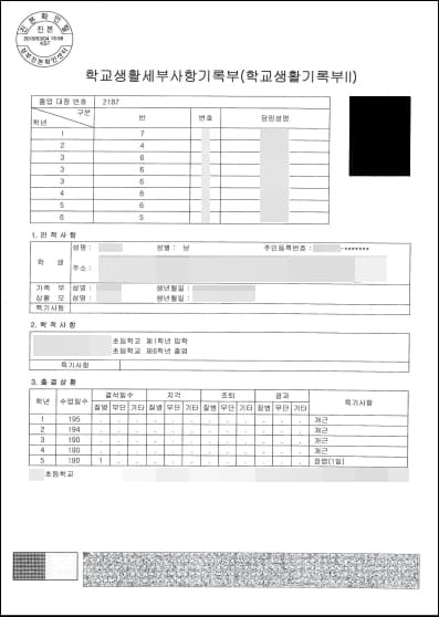 - 학적부(생활기록부) 증명