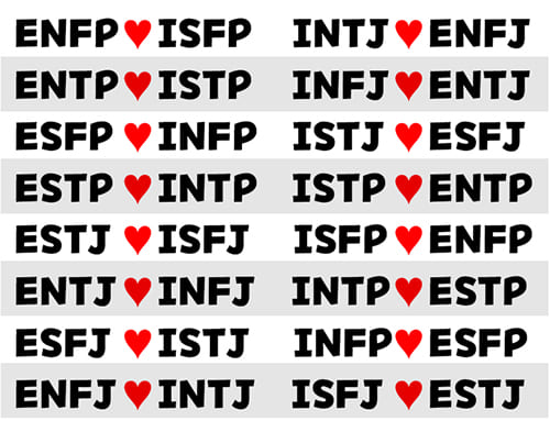 MBTI 성격검사 결과 유형에 따라 천생연분이라고 할만한 조합들을 정리해 보았습니다. 본인과 상대방의 성격의 유형을 놓고 어떤 유형들이 좋은 궁합인지 확인해 보시기 바랍니다.