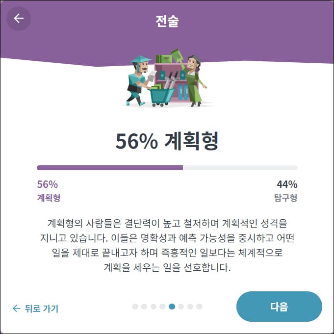 계획형과 확신형도 어느 정도 중도에 가깝게 나옵니다. 이번 부분들을 확인하면 좀 더 자신의 성격을 이해할 때 도움이 됩니다.